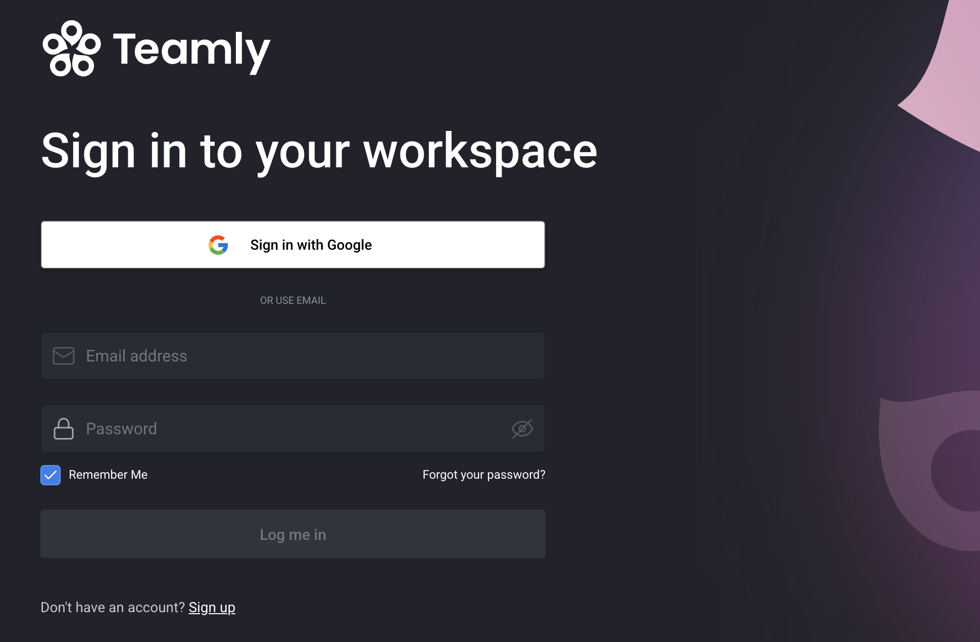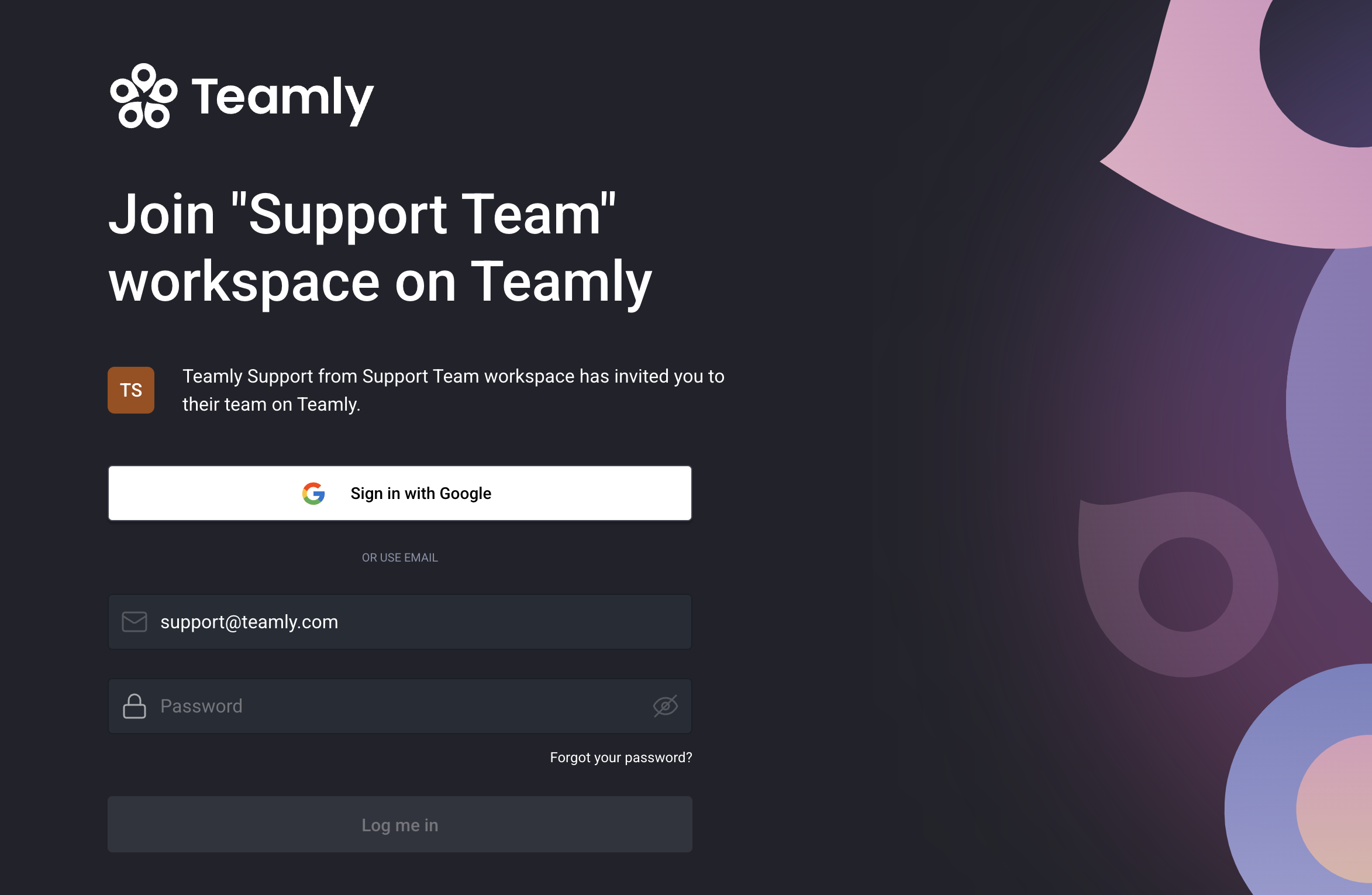 If users have an existing account navigate to the Teamly login page to access the workspace(s).