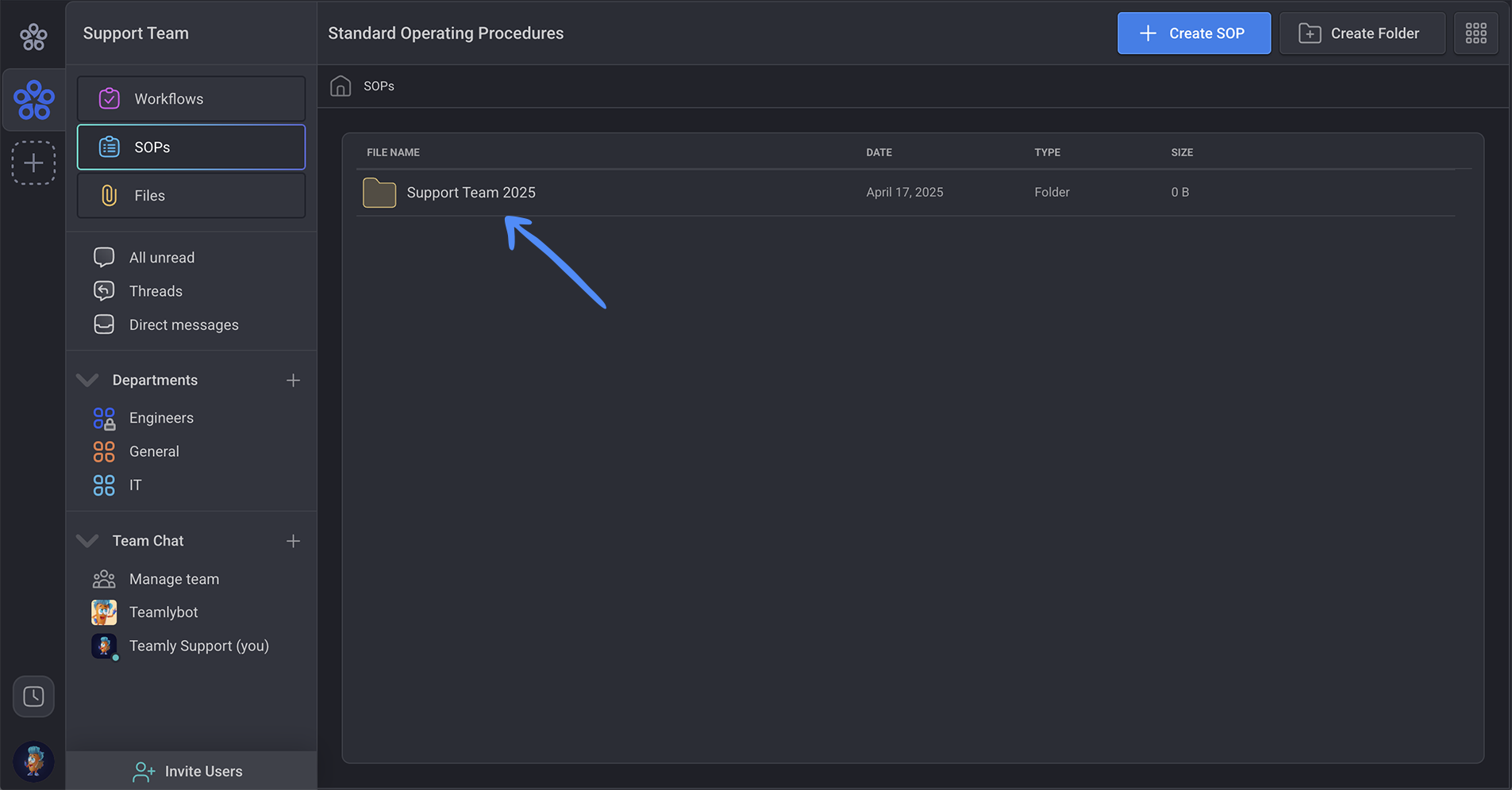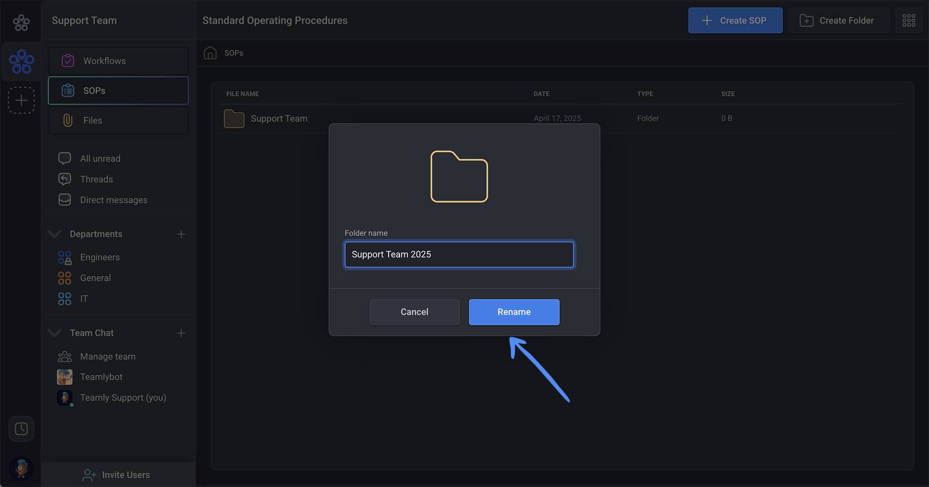 Renaming SOP folders in Teamly to align with the business can be easily done.