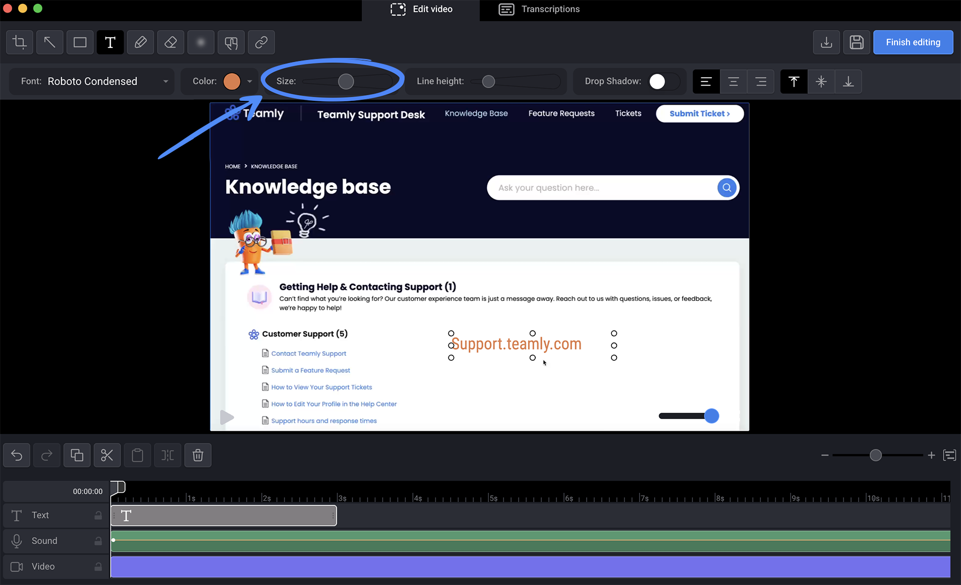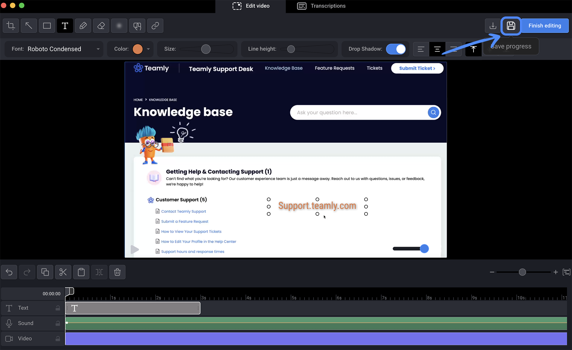 Adding text can enhance your video by providing context, emphasizing key points, or adding a personal touch. Teamly offers a range of text customization options, allowing you to seamlessly integrate text into your video to communicate your message more effectively.